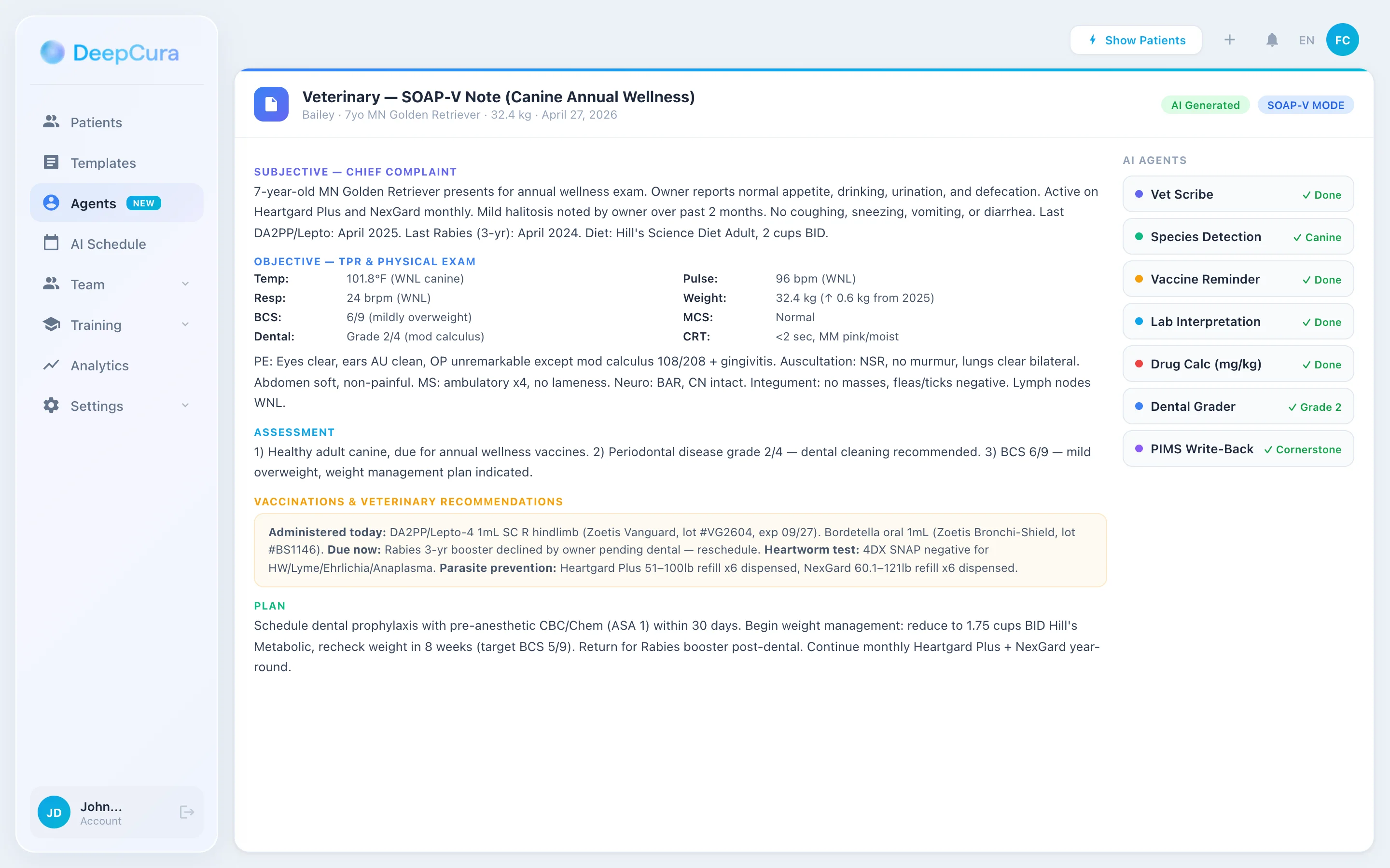 DeepCura: Customizable AI Scribe for Veterinary Practice